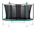 Защитная сеть высотой 2,6 метра, сосотоит из 8 стальных стоек, закрытых чехлами с наполнителем, материал сети - устойчивое к ультрафиолетовому воздействию, мягкое и упругое тканое полотно из полиэстера. Защитная сеть устанавливается внутри батута, после прыжкового полотна, что исключает возможность случайного попадания прыгающих на раму или пружины.