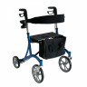 Колеса увеличенного диаметра позволяют передвигаться достаточно быстро, а прогрессивная тормозная система обеспечивает высокую безопасность движения. Ходунки снабжены мягкими накладками в области захвата и регулируются по высоте.